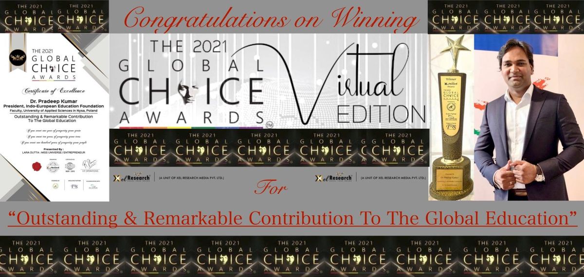Wyróżnienie The 2021 Global Choice dla dra Pradeepa Kumara, wykładowcy Wydziału Neofilologii oraz prezesa Indo-European Education Foundation za wybitny i znaczący wkład w edukację globalną.