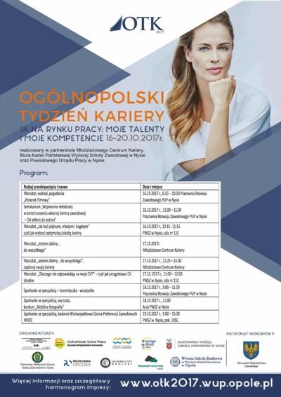 "Ja na rynku pracy: moje talenty i moje kompetencje" pod takim hasłem w dniach 16 - 20. 10.2017 r. odbędzie się IX Ogólnopolski Tydzień Kariery.