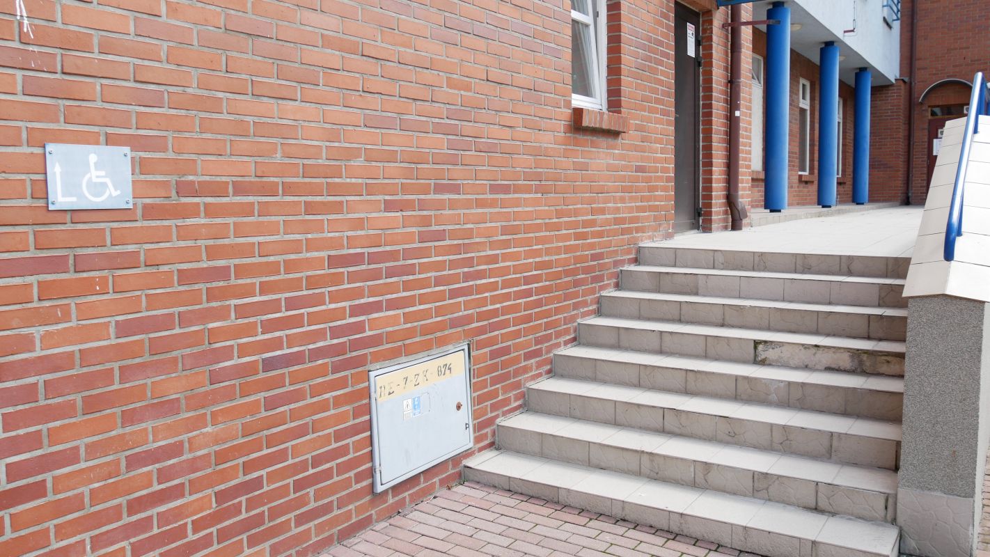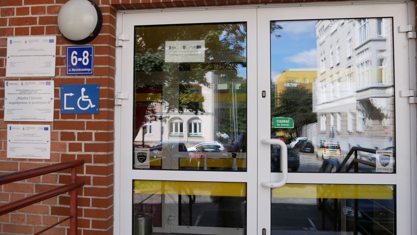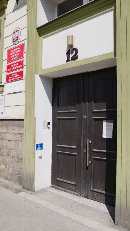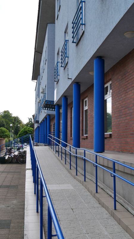 • obiekty uczelniane wyposażone są w: podjazdy, windy, podnośniki przychodowe, a budynki oznakowane poprzez wskazanie kierunku wejścia dostępnego dla osób ze szczególnymi potrzebami