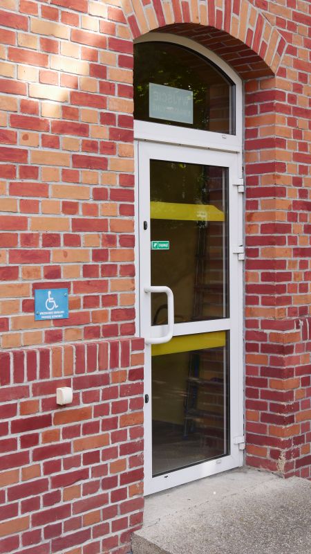 • większe powierzchnie szklane w obiektach, oznakowano żółtymi pasami (dla osób słabowidzących)