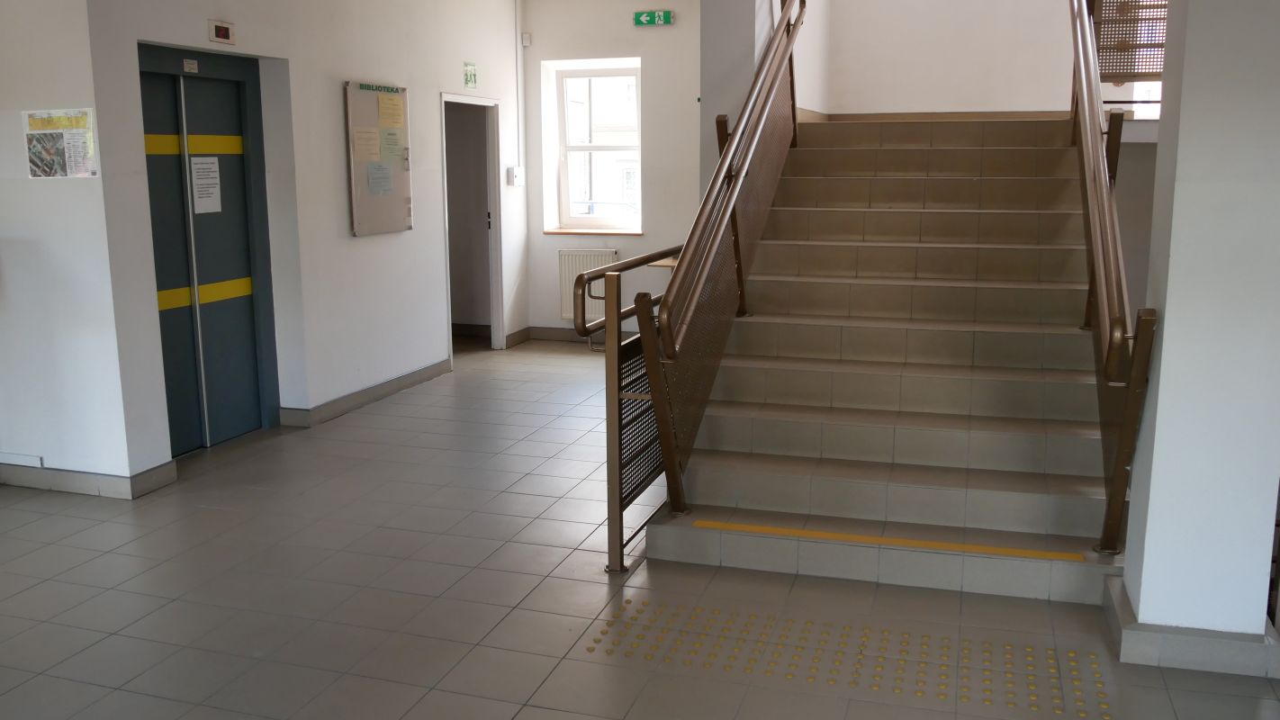 • w budynku gdzie mieści się Biblioteka, oznakowano schody, zastosowano pola uwagi